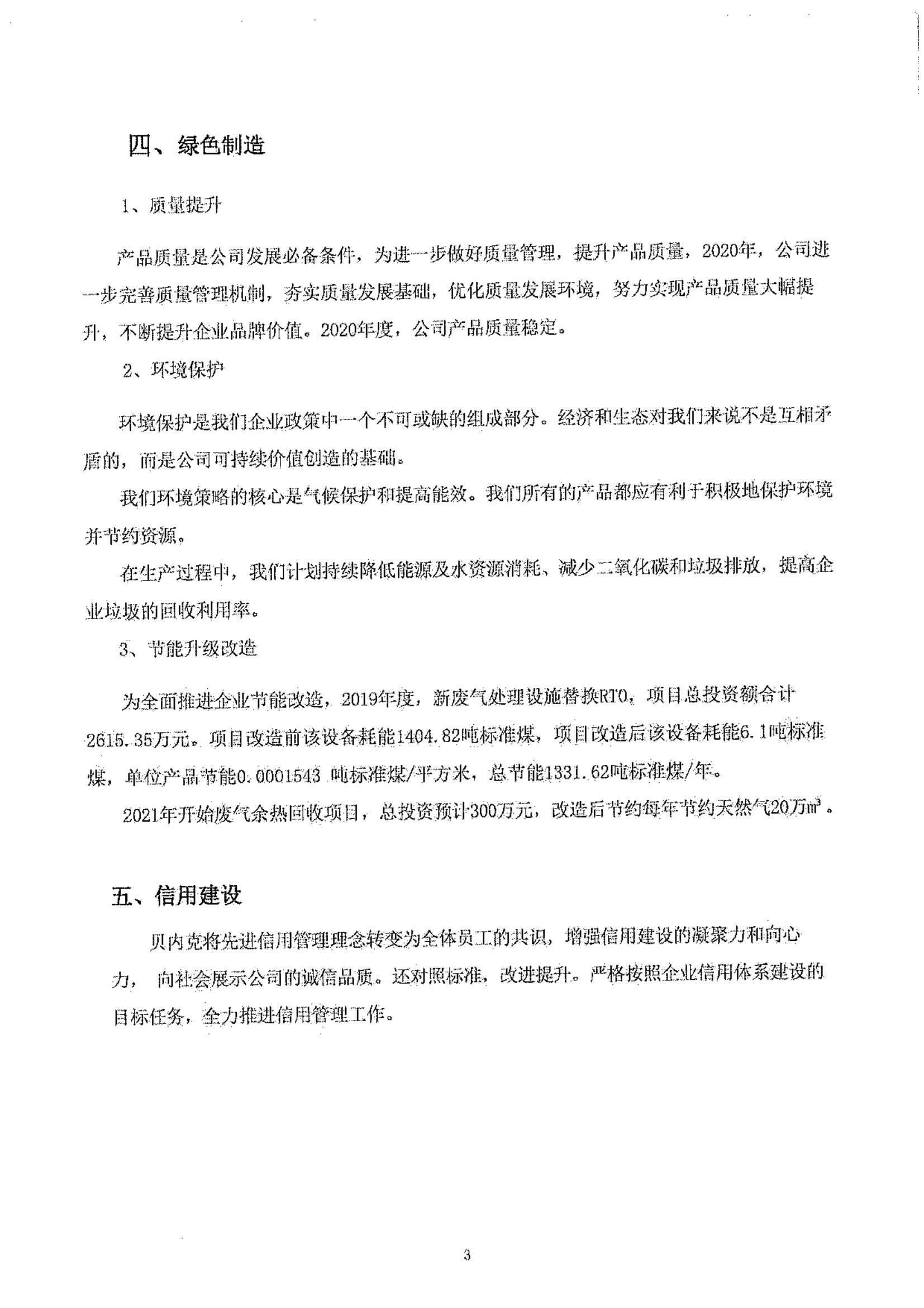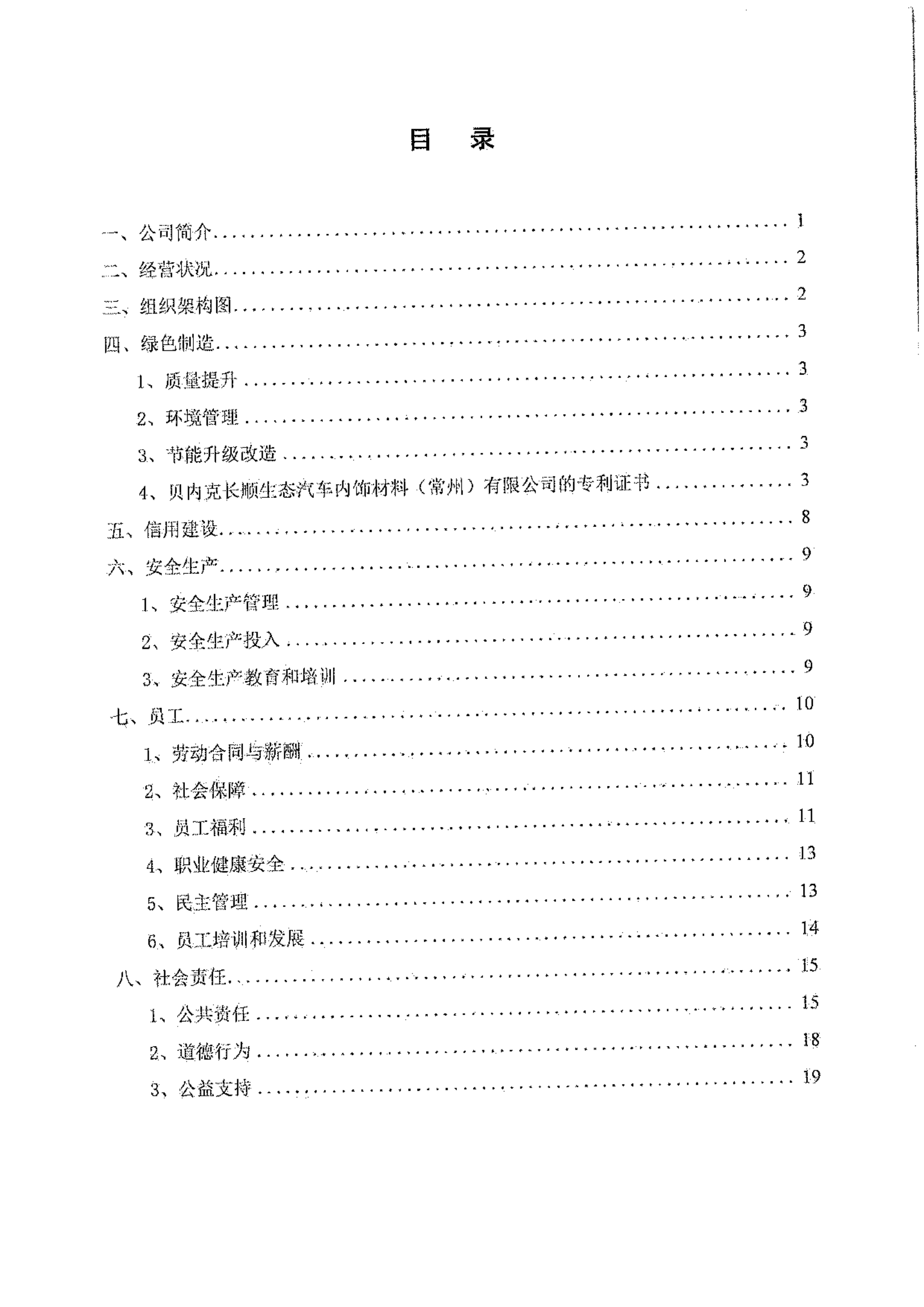 貝內克長順生態汽車內飾材料(常州)有限公司社會責任報告(2020年度)