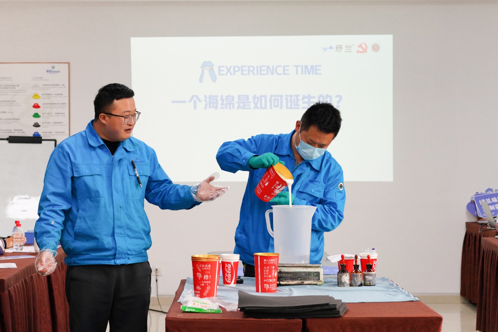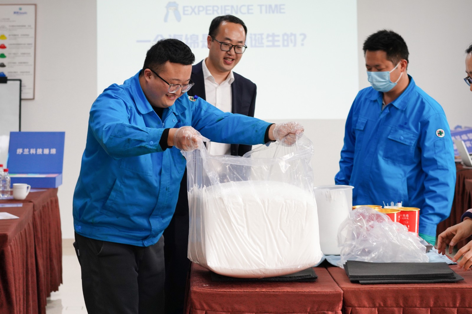 隨后,研究院專業(yè)發(fā)泡研發(fā)人員通過現場實驗,向學生們展示了一個海綿是如何誕生的,讓他們親身感受科學實驗的神奇。