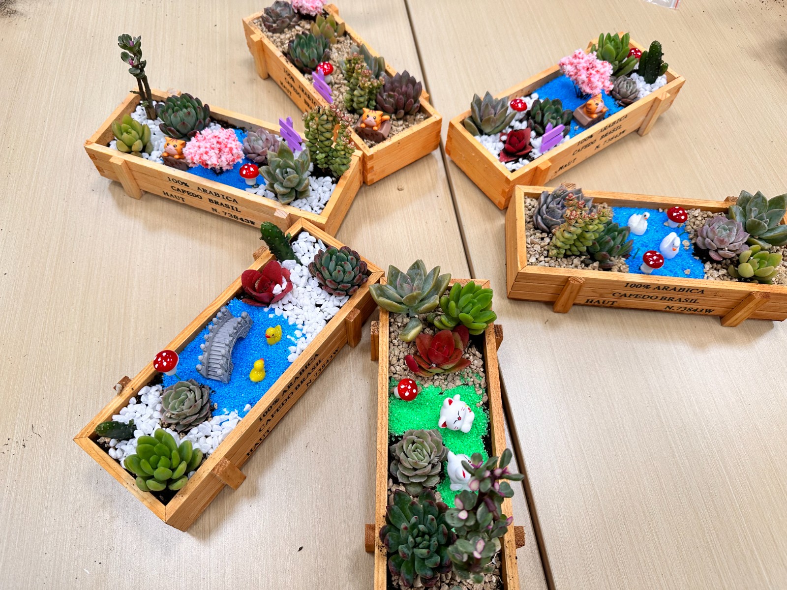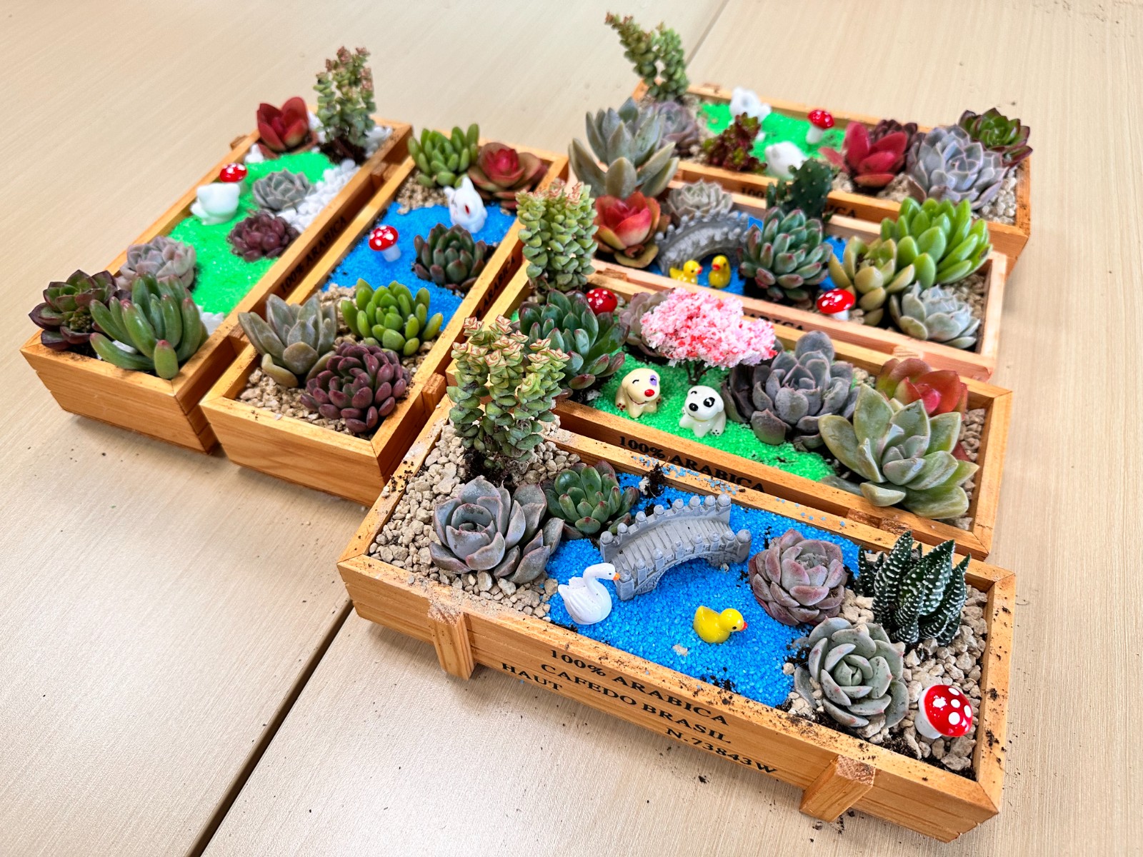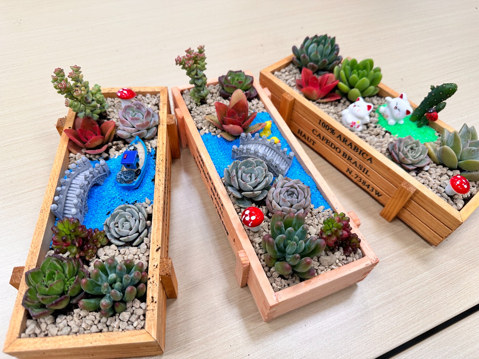 在創(chuàng)作過程中,大家發(fā)揮天馬行空的想象力,將彩色石子、萌趣擺件與多肉植物巧妙結合,打造出一個個充滿生機與個性的“迷你花園”。這些作品不僅展現了女性獨特的審美與創(chuàng)造力,更成為了一份獨一無二的心靈治愈。