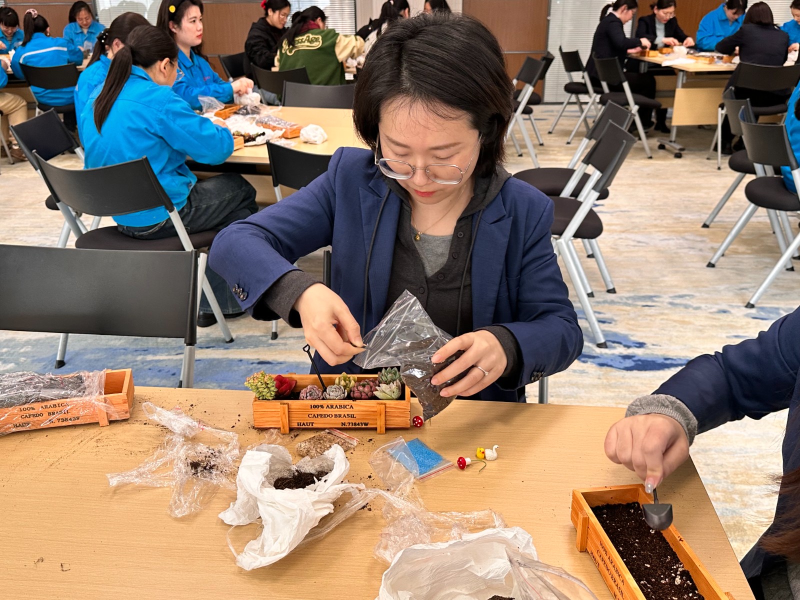 本次女神節(jié)活動不僅是對女神們辛勤付出的肯定,更是一次心靈的對話與治愈。通過親手打造多肉微景觀,大家在泥土與綠意中找到了片刻的寧靜,感受到生活的美好與溫暖。