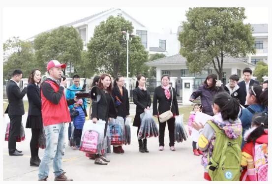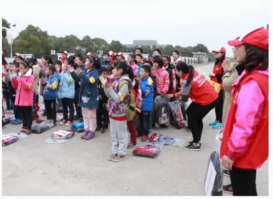 植樹結束后,長順的伙伴們給這些孩子一一贈送了書包與學習用品,孩子們邊唱邊跳,對長順的叔叔阿姨們連聲道感謝,場景溫暖而又感人。