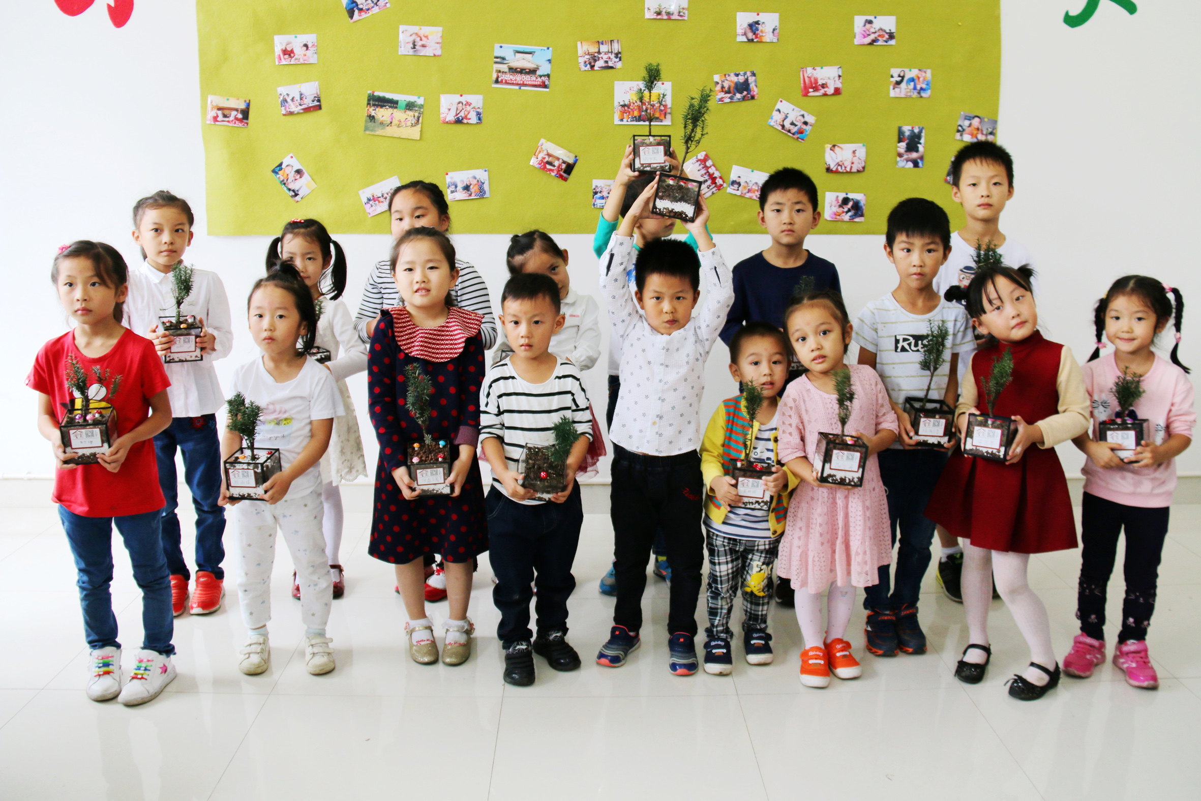 ▲和爸爸媽媽一起親手制作紅豆杉DIY盆景