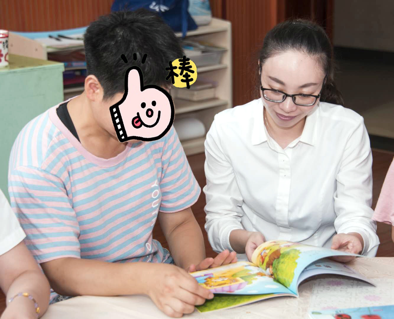 在等待烤制的時(shí)間里 孩子拿出繪本 和我們分享平時(shí)他們看的故事 他們都認(rèn)識(shí) 白雪公主、佩琪、熊寶寶 佩琪格外受到孩子的喜歡